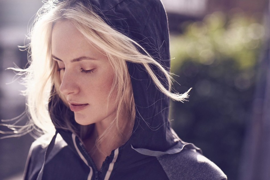 Sweat hugs her body.  Acceptance.